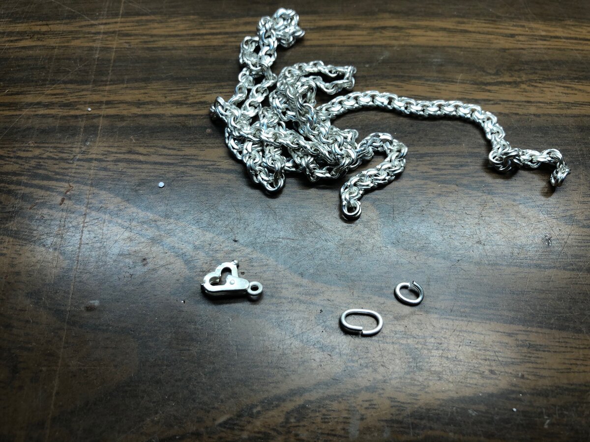 Здравствуйте уважаемые читатели, сегодня я продолжу рассказ об изготовлении цепи «Бисмарк». В предыдущей статье я рассказал о подготовительных операциях, теперь о изготовлении самой цепи и замка к ней, до готового результата. Ну, продолжим: Для того чтобы готовая цепь была нужного веса, существуют формулы расчета разных цепей. Мои расчеты дали мне, что толщина проволоки должна быть 0,9 мм , а толщина ригеля ( ригель- это стержень на котором накручивают проволоку, на больших ригелях загибают кольца) 2,3 мм. Выбираем нужный и делаем небольшое приспособления для навивки спиралей, оно позволит навить спираль с интервалом между витками. Затем берем проволоку и начинаем навивку: Получилось три спирали из которых и будем собирать цепь: Далее начинаем сборку, сначала делаем первое звено: Затем начинаем собирать остальную цепь: Далее когда все полотно цепи собрано, приступаем к пайке, пайка производится с двух сторон каждого звена: После пайки цепь помещается в раствор лимонной кислоты, для уд