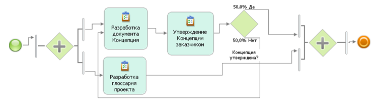 - Определить порядок выполнения действий. Действия в рамках одного бизнес-процесса могут выполняться как последовательно, так и параллельно. Очевидно, что параллельное исполнение, если оно допустимо, позволяет сократить общее время выполнения процесса и, следовательно, повысить его эффективность.