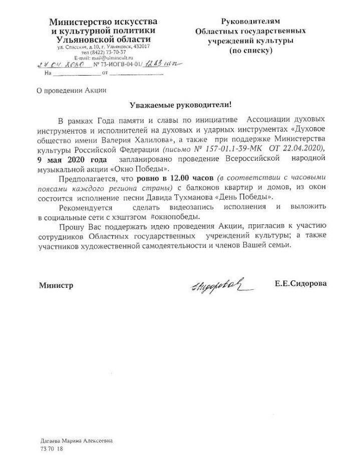 В Ульяновской области горе-чиновники предложили проведение "Всероссийский наподной музыкальной акции Окно победы". Идея заключается в том, что ровно в 12 часов дня, каждый житель должен будет спеть песню Тухманова "День победы". Все это нужно снять на видео и залить в интернет с хэштегом "окнопобеды". Очень радует, что в тяжёлые времена, народные избранники решают такие важные вопросы. Очевидно, что такие важные культурообразующие мероприятия, как День Победы, должны проводиться в соответствии с традициями. Флэшмобы, которые мы заслужили.