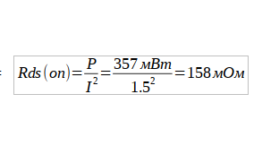 Сопротивление транзистора в открытом состоянии должно быть как можно меньше, это основной источник нагрева транзистора. Согласно закону ома, мощность выделяемая на данном транзисторе в открытом состоянии вычисляется по формуле. Ограничением мощности является максимальный нагрев корпуса, который можно рассчитать, используя коэффициент выше. Рассчитаем требуемое минимальное значение Rds(on), которое подойдёт для следующей ситуации.