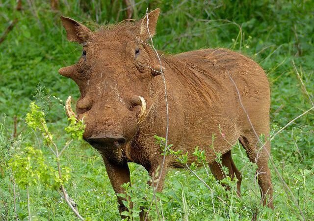 Всем привет! Бородавочник (Phacochoerus africanus) относятся к семейству свиней. Как и положено свиньям, на вид бородавочники не очень-то привлекательны. Тело бородавочника покрыто длинной, редкой, жесткой щетиной, рыло почти всегда в грязи, им животные разгребают землю в поисках еды. На верхней челюсти у бородавочников имеется пара клыков, которые могут достигать 25 см в длину. Эти клыки – грозное оружие бородавочников. Ими они защищаются от хищников, а так же пускают их в ход во время драк с соперниками. Бородавочник в Африке фото Вообще, взрослые самцы очень агрессивны. Они постоянно вступают в схватки и готовы драться по любому поводу: за воду, еду. Присутствие соперника приводит самца бородавочника в ярость, и он старается прогнать чужака со своей территории. Самцы чаще всего держаться поодиночке или сбиваются в группы, состоящие только из одних самцов. Самки же с детенышами живут семейными группами. У бородавочников очень много сородичей по всему свету. Например, дикий кабан. Дет