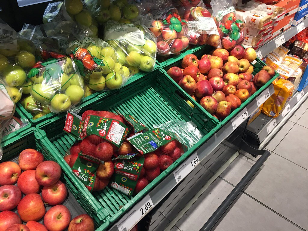Помидоры черри — 1.39 €, ананас — 0.89 €, апельсины — 0.95 €, мандарины — 1.29 €, бананы — 1.79 €, гранат — 3.25 €, личи — 2.40 €, яблоки — 1.69-2.69 €. Груши — 1.79-2.49 €, киви — 1.99-2.79 €, виноград — 2.99 €, манго — 2.10 €, авокадо — 1.99 €. Цуккини — 3.24 €, шампиньоны — 2.60 €, салат айсберг — 3.10 €, морковь — 2.15 €, помидоры — 3.39 €, цветная капуста — 2.16 €, листья салата — 0.99 €, капуста пак-чой — 1.69 €, тыква — 0.99 €. Капуста — 0.89 €, спаржа — 3.99 €, огурцы — 0.89 €, артишок — 2.99 €, красная капуста — 1.19 €, овощная смесь — 0.99-1.99 €, картошка — 1.69-2.10 €. Баклажан — 2.45 €, брюссельская капуста — 1,99 €, редиска — 1.60 €, стручковая фасоль — 2.49 €, шампиньоны — 1.80 €, груздья — 2.60 €. Овощи в заморозке — 1.09-2.25 €.