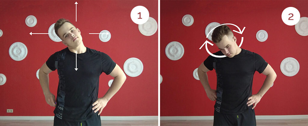 Для чего нужна разминка? Разминка перед тренировкой подготовит ваше тело к нагрузке. Хороший разогрев постепенно усилит кровообращение, разогреет, связки и увеличит диапазон движений. Но самое главное - разминка поможет избежать травм. Разминка состоит из двух частей: разминки в движении и общеразвивающих упражнений. Каждое упражнение выполняйте на 16 счетов: 8 в одну сторону и 8 - в другую. Упражнения для шеи: 2. Круговые вращения головой Упражнения для плечевого сустава: 1.Круговые вращения согнутыми руками 2.Круговые вращения руками Упражнения для локтевого сустава: 1.Круговые вращения предплечьями Упражнения для лучезапястного сустава: 1.Круговые вращения кистями Упражнения для поясничного отдела позвоночника: 1.Круговые вращения туловищем 2.Наклоны туловища к левой ноге, к середине и к правой. Упражнения для тазобедренного сустава: 1.Круговые вращения согнутой ногой Упражнения для коленного сустава: 1.Круговые вращения коленами Упражнения для голеностопного су