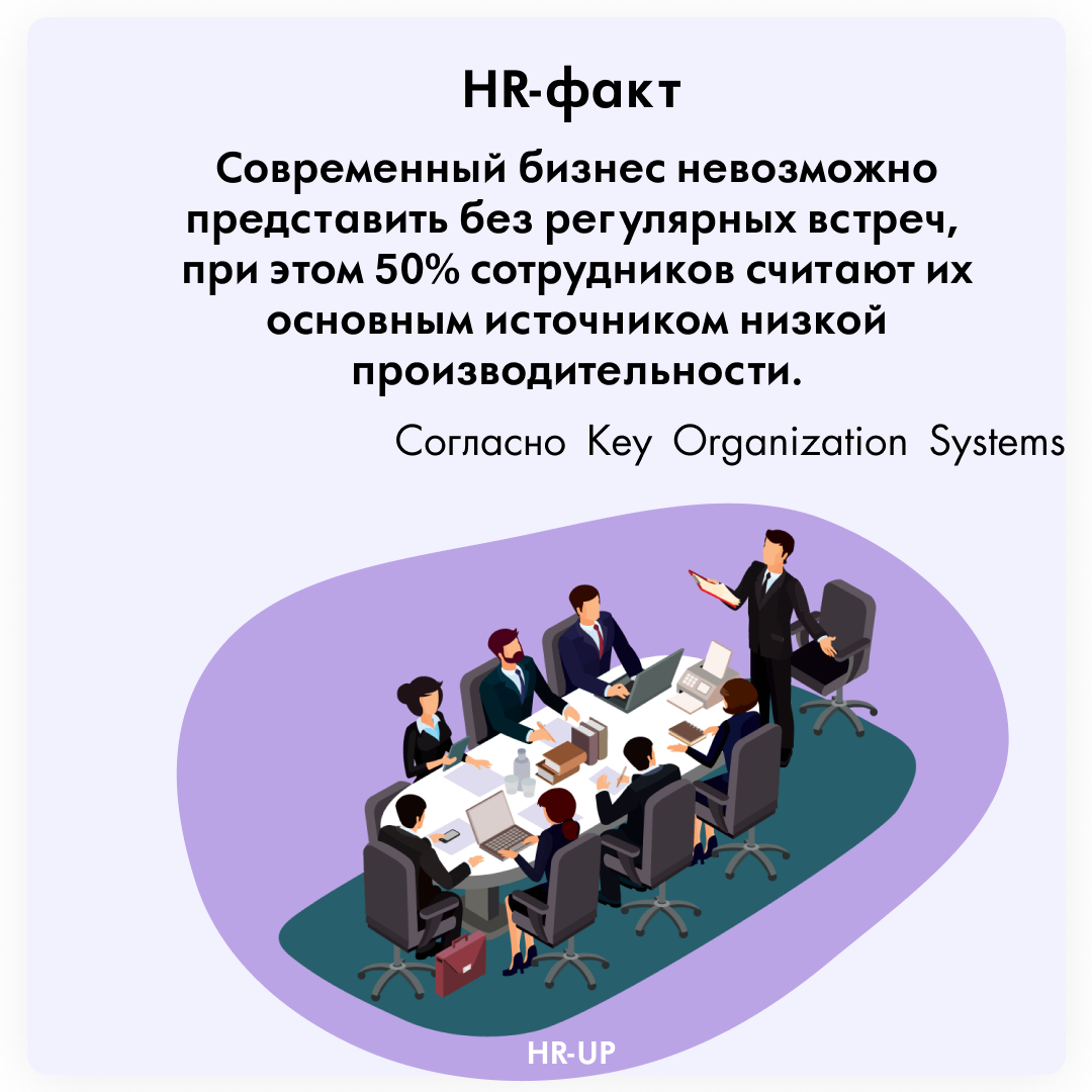 Современный бизнес невозможно представить без регулярных встреч, при этом 50% сотрудников считают их основным источником низкой производительности. (Исследование Key Organization Systems http://www.keyorganization.com/time-management-statistics.php) Большинство компаний переходят эту границу, когда число и продолжительность встреч, начинает отрицательно влиять на бизнес. Исследование Verizon (https://e-meetings.verizonbusiness.com/global/en/meetingsinamerica/uswhitepaper.php) показало, что Основные причины: Что с этим делать? #HR #HR_UP #hr_consulting_online #производительность