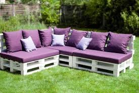 Садовая мебель, изготовленная из поддонов , в частности диванов и кресел, должна быть украшена подушками, которые не только обеспечат комфорт сидения, но и привнесут цветовой оттенок. Поставьте небольшие кофейники или декоративные подносы с сезонными фруктами на кофейные столики из поддонов.