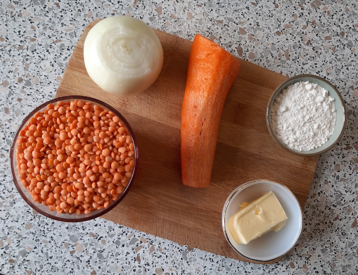 Когда я впервые попал в Стамбул, то среди прочей прекрасной босфорской еды навсегда полюбил турецкий чечевичный суп — мерджимек чорбасы. А когда девять лет назад пришёл работать в журнал «Афиша-Еда», то одним из первых моих заданий было найти в Москве хорошего турецкого повара и узнать у него, как правильно готовить этот суп. Так я получил рецепт из первых рук: варить чечевичный суп меня научил повар Осман Йылдыз, который работал тогда шефом в турецком кафе «Бардак» на Маросейке. И с тех пор я только так его и готовлю; он стал одним из главных супов в нашей семье. Осман, подстраиваясь под московские вкусы, добавлял в суп сливки, но сказал мне, что если надо, как в Турции, то сливки не нужны. Я и не добавляю. Суп чрезвычайно прост. Все основные ингредиенты — перед вами. Не хватает только воды и пары мелочей. Итак, вам понадобятся: Красная чечевица — 1 стакан; это примерно 150 г Вода — 5-6 стаканов, то есть 1–1,2 л Репчатый лук — 1 головка Морковь — 1 шт. Сливочное масло — 30 г Мука