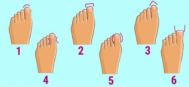 Здравствуйте, в данной статье Вы сможете узнать о своем характере не выходя из дома. Внимательно присмотритесь к пальцам Ваших ног и Вы с легкостью можете сравнить результаты с картинками ниже. Результат №1 Скругленный большой палец говорит о том, что вы уравновешенный человек и Ваш характер довольно-таки спокойный. Вы подвержены страху осуждения, Вы зависите от чужого мнения, оно важнее Вашего собственного. Результат №2 Если Ваш палец принимает квадратную форму, то Вы обладатель хорошего чувства юмора. Вы оптимист и на любую ситуацию Вы смотрите с улыбкой. Ни что не может Вас вывести из себя, все решения делаются на позитивной ноте. Результат №3 Если Ваш палец принимать треугольную форму, то Вы критичны ко всем людям. Вы думаете, что все люди должны ошибаться, что ни кто и никогда не может выполнять всю работу идеально, все должны ошибаться. Вам свойственно придираться ко всем и всему. Перед тем как что-то говорить, Вы несколько раз проверяете информацию, что бы убедить себя. Результа