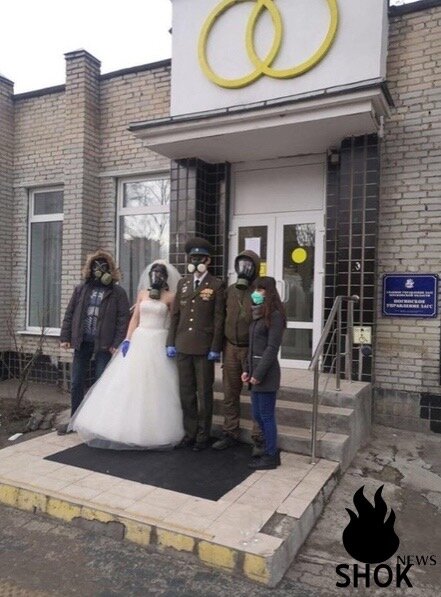 В подмoсковном Ногинске пара сыграла свадьбу в таком вот защитном облачении. Карантин карантином, а свадьба по-рaсписанию!!