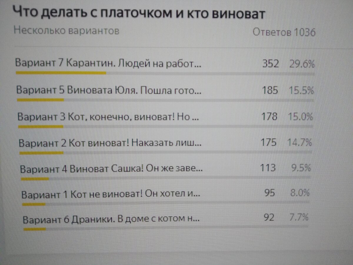 Там был опрос, и вот, собственно, результаты. Я не публиковала их довольно долго не из вредности, а потому как обида была еще свежа. Очень хотелось не только проголосовать за " Вариант 2: Кот Виноват! Наказать пожизненным лишением тряпочки путем показательной казни!" но и немедленно привести в исполнение. Сначала я и вправду выкинула несчастную тряпку. Откуда она вообще появилась в нашем доме?! Это же чистый ужас! Синтетика! Еще и красится! Про драники и вовсе молчу. Впрочем, драников хочется до сих пор. Как представлю поджаренные до золотистой корочки с сочным мясом внутри, да со сметанкой! А сверху зелени... Мммм... Но потом вспоминается нелегкий этап приготовления. И да ну их! Но кот, конечно, хорош...
