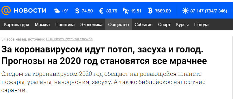 Глупо надеяться, что по волшебному свистку все вдруг в одночасье вернется на круги своя. Мы все следим за количеством зараженных выздоровевших и умерших в главных заголовках новостей. И ко всему прочему другие страшилки от мейла наблюдаем в той же новостной ленте. С таким же успехом там можно писать про онкобольных, или инфаркты, или смертность и ранения при ДТП. Цифры думаю будут сопоставимые. Только эти цифры и страшилки, в первую очередь отвлекают нас от экономической катастрофы, в которой Россия оказалась благодаря амбициям "эффективных менеджеров". Ни в коем плане не хочу приуменьшать опасность короновируса, но дальнейшую жизнь будут определять цифры, которые печатают в последних строках новостей, после прогноза погоды и мелким шрифтом. А цифры эти безжалостно возвращают нас в экономику девяностых годов прошлого века. Цена нефти меньше 20 долларов за барель делает ее экспорт практически нерентабельным. То есть, если при цене 60 хоть что то оставалось в России, то при 20 по