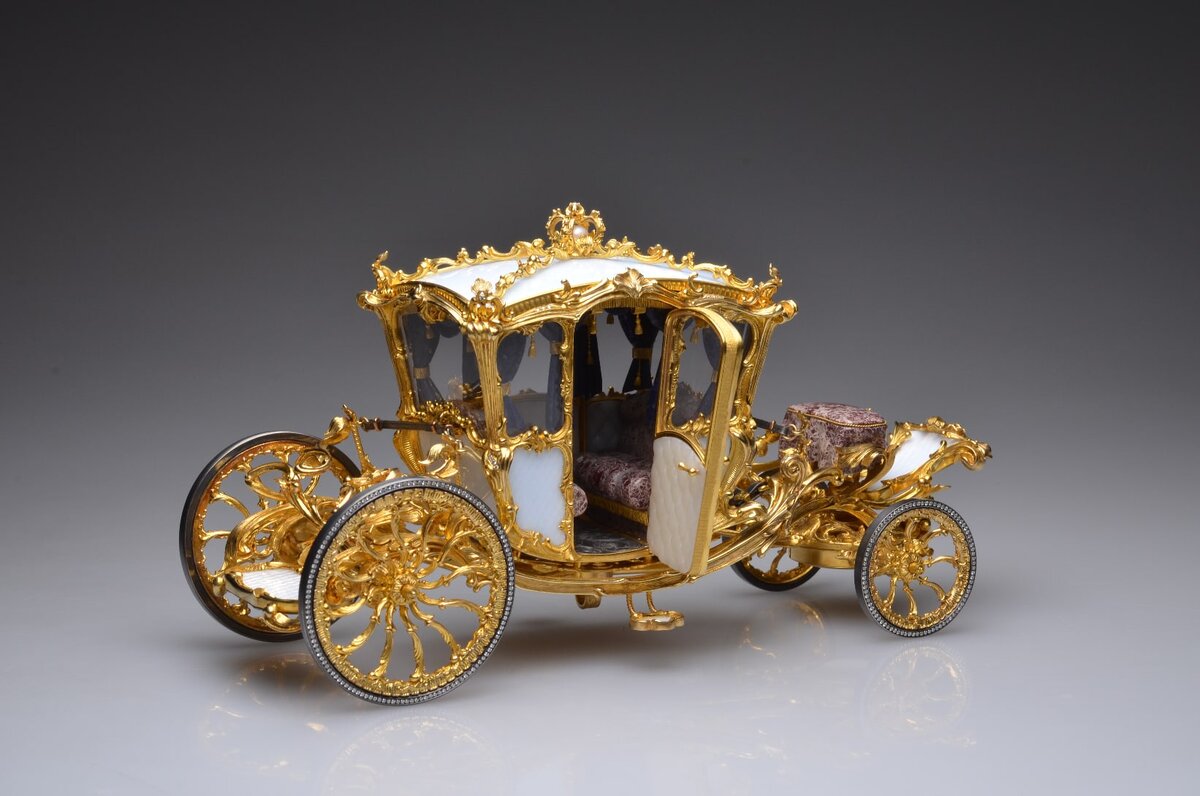 Карета - серебро, золочение, золото, бриллианты, поделочный камень, эмаль. Роберт Мельников, работы выполнены в Ювелирном доме Анна Нова.