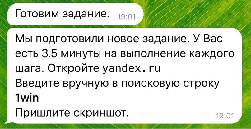 Как заработать? Переходим к боту - https://t.me/Triumfbonusbot?start=562551769 Далее жми "Заработать" и следуй инструкциям бота - все задания понятны, не сложны в исполнении и не требуют много времени на их выполнение. Бот подготовит для тебя задание, ты увидишь сообщение (см.скриншот) Задание на скриншоте - это пример (у каждого будут разные задания) Делаем все строго по заданию! Если написано Яндекс, значит ищите в Яндексе, если Google, то строго Google. Иначе задание не будет засчитано Вбил в поиск? Присылай скорее скриншот экрана в телеграм-бот. Помни, что на выполнение каждого задания у тебя есть ровно 3,5 минуты. Не успел? Ничего страшного, жми "Заработать" снова и начинай сначала Далее ты получишь следующее задание Нашел сайт? Делай скриншот и скорее кидай его боту. Не успел за 3,5 минуты? Начинай заново. Читай задания внимательно, открывать сайт не нужно! Никаких пометок, рисунков, линий, кружочков на самом скриншоте делать не нужно. Переходим к следующему шагу задания Открыв