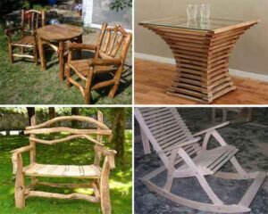 Содержание статьи: Древесина — это самый популярный и доступный материал для изготовления самоделок. Чего только стоят поддоны, из которых можно делать мебель и строить различные постройки. Однако даже необрезную древесину можно использовать для создания самых настоящих произведений искусства. Ниже на сайте мастеров самоделок navseryki.ru мы рассмотрим самые популярные самоделки из дерева. Что можно сделать из древесины Садовая лавка из брёвен — если вам часто приходится заниматься своим садом, то, наверняка, у вас скопилось большое количество веток с брёвнами. Не спешите от них избавляться, а лучше высушите их, и соберите вот такую красивую лавку для сада из древесины. Существует несколько правил при изготовлении данной самоделки из дерева. Во-первых, лучше сначала будет высушить древесину, так как её все равно будет деформировать во время сушки. Во-вторых, прежде чем отлаживать дерево сушиться, обязательно снимите с него кору, так древесина высохнет намного быстрее. Ну а дальше, ког