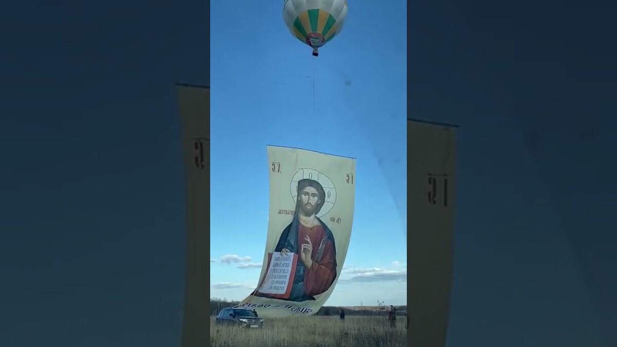 В Серпухове запустили аэростат с прикрепленным к нему 40- метровым полотном Иисуса.