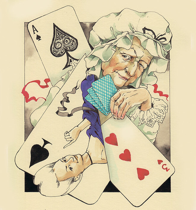 Все, кто любит оперу, и даже те, кто её не любит, но смотрел "Что? Где? Когда?", знает эту мрачную французскую песенку (арию), которую старая графиня - "осьмидесятилетняя карга" - напевает в опере перед сном своим скрипучим голосом. От этой мелодии веет загробным холодом, и действительно - это последние слова, которые она произнесёт в своей жизни. За портьерой уже ждёт выхода её убийца - человек в гусарском мундире (почему в гусарском - здесь). Почему ария на французском? Как известно, музыка и слова этой маленькой арии Графини Чайковскому не принадлежат. Он взял их из старой (1784 года) комической оперы французского композитора Андре Гретри "Ричард Львиное сердце", поскольку перед ним стояла задача создать в "Пиковой даме" атмосферу 18 века (почему и зачем - в этой статье). У Гретри это сентиментальная ария в духе романса, которую поёт юная англичанка Лоретта. Она поджидает своего любимого Флорестана на свидание и жалуется на то, что совершенно теряет голову от любви. Перевод прим