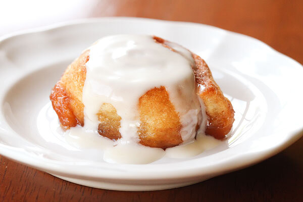 Обледенение булочки с корицей.