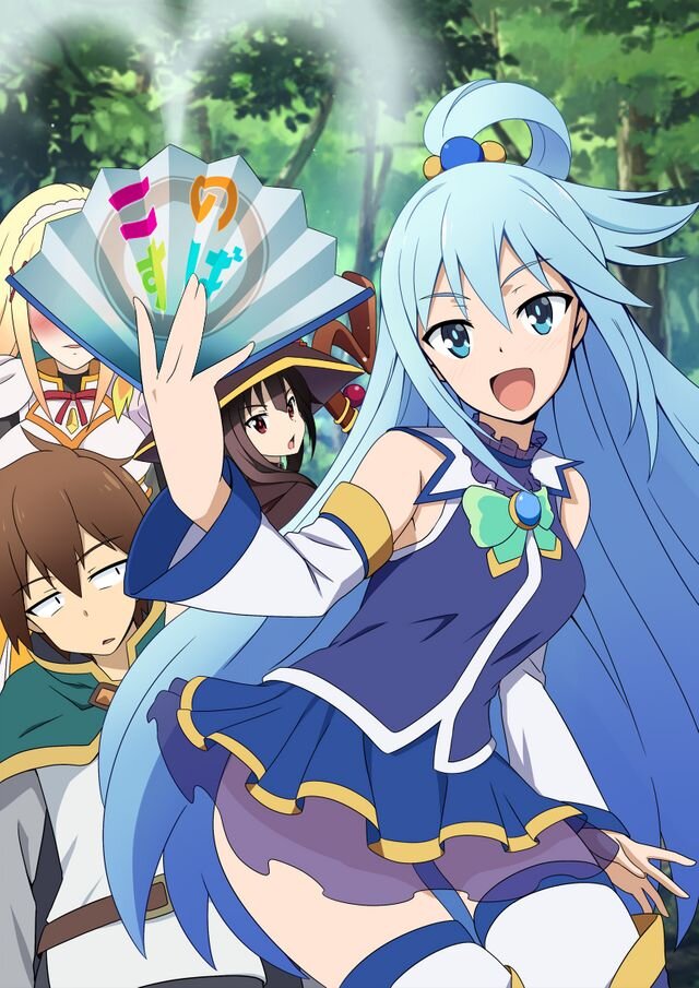 1.Коносуба - Нелегка жизнь японского хикикомори. Сидишь себе дома, смотришь аниме, читаешь мангу — красота. Но стоит лишь шагнуть за порог своего дома, и тебя сразу начинают окружать всевозможные опасности. Сато Казума познал это на своей шкуре. Отправившись за ограниченным изданием знаменитой игры, он спасает девушку от неминуемой гибели под колесами автомобиля (детали опустим), однако сам при этом умирает. Но попал Сато не на небеса, а в некое подозрительное место с двумя стульями по центру. Вскоре перед ним возникает девушка, представившаяся богиней Аквой, и предлагает следующее: или ты отправляешься на небеса, где уныло и скучно, либо идешь в параллельную вселенную, терроризируемую злобным владыкой демонов, и спасаешь бедную популяцию людей, сокращающуюся день от дня. А в помощь себе ты можешь взять любой легендарный предмет, но всего один. Сато, не будь дурак, поступил хитро — он решил взять с собой богиню, ведь это же так удобно! Вот так началось их приключение
