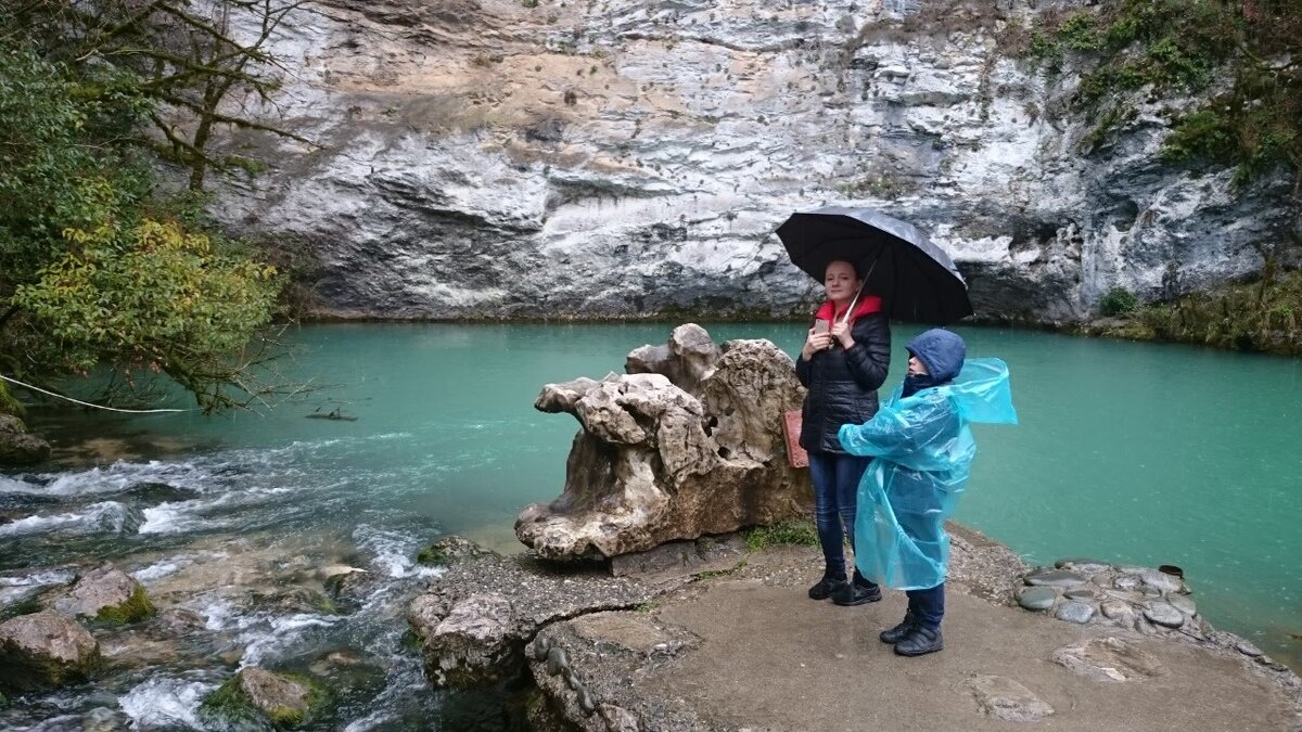 Если вы поедете в Абхазию, вам обязательно предложат кучу экскурсий. И если вы выберете поездку к озеру Рица вас скорее всего завезут в это место. Не остановиться у него просто невозможно, ведь оно прямо у дороги. На 13 километре, на правом берегу реки Бзыбь слева от шоссе находится этот популярный туристический объект. Небольшое озеро карстового происхождения площадью 180 м² и глубиной около 80 метров имеет яркий голубой цвет, и за это получило оно свое название "Голубое". Ученые объясняют его насыщенный цвет пластами минерала лазурита, находящимися на дне и стенках водоема. Яркость цвета не меняется в зависимости от времени года и погодных условий. Голубое озеро не замерзает круглый год, его поверхность всегда спокойна и кажется, что вода мутновата, но это не так. Просто из-за малой ширины водоема дневной свет не проникает в толщи воды. Рыба в Голубом озере не размножается, отсутствуют водоросли и фитопланктон. Вода все время холодная, даже летом. Питается водоем подземным потоком во