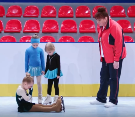 Однажды мы смотрели "Однажды в России". Вот такой каламбур. В этой передаче очень иронично показывают жизнь в нашей стране. Созданы целые образы, которые отражают черты нашей жизни, но часто авторы шутят и на другие темы, например, спорт. Жёсткий тренер Ольга Картункова Тренер, почувствовавший власть, тренирует маленьких девочек, а лучше сказать- мучает. И график у них: с 9 утра до 10... вечера. Бывают ли такие тренеры? Скорее всего только в анекдотах. Но у актеров чудесно получилось отыграть эти роли. Были задеты темы тренировок, а также сильной школы фигурного катания в России. Ведь этот вид спорта также можно считать символом современной страны. Наши спортсмены успешно представляют страну на международных соревнованиях, занимая иногда весь пьедестал. -Здрасте! А, извините, я думала дети. Что вы хотели? -Ну, минуту назад дочку на фигурное катание отдать. Сумасшедший Александр Пташенчук Бывший хоккеист сейчас совмещает в себе две личности: дембель и фигурист. Этот образ привычен ак