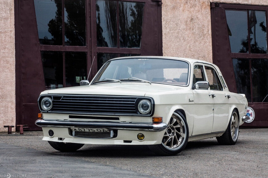 В этом проекте много перебора в деталях, слишком они выпячены и не соответствуют исходному облику оригинала. Например, слишком низкая и экстравагантная губа совсем не соответствует узкому хромированному переднему бамперу. А современная линзовая головная оптика делает вид «Волги» немного глуповатым.