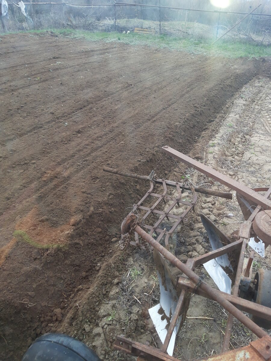 Немного хотел рассказать и показать о доработке, которая позволила уменьшить физическую работу после плуга. Плуг небольшой трёхкорпусной цепляю за т-25 (владимирец). Пахота как правило производится весной и осенью . На просторах интернета очень много обзоров плугов и борон к ним, которые установлены разными вариантами. Я собрал именно так как видите на фото Спереди вал, а сзади швеллер на конце которого имеется отверстие, что бы вставить звено цепи Как установлены цепи показано на фото Карабинами можно отрегулировать длину цепи при необходимости. Не мало важную роль играет труба, которая выравнивает поверхность после бороны и ещё дополнительно мельчит комки земли. Вот к примеру видео без бороны ( смотрите в след. публикации т.к. в эту статью загрузить не получилось) Как видите борону очень легко убрать. При поднятии навески с плугом поднимается и борона Трубу хотел сделать съемной, но как всегда на скорую руку приварил сделав обязательно её плавающей, иначе она буде