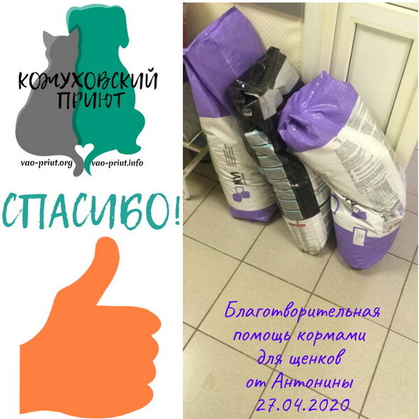 Привезли 4 мешка корма, оставили на охране. Передали ветеринарам для распределения щенкам.