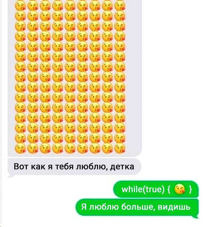 while(true) в программировании делает бесканечный цыкл и получается что вот этот смайлик будет бесканечный 😘