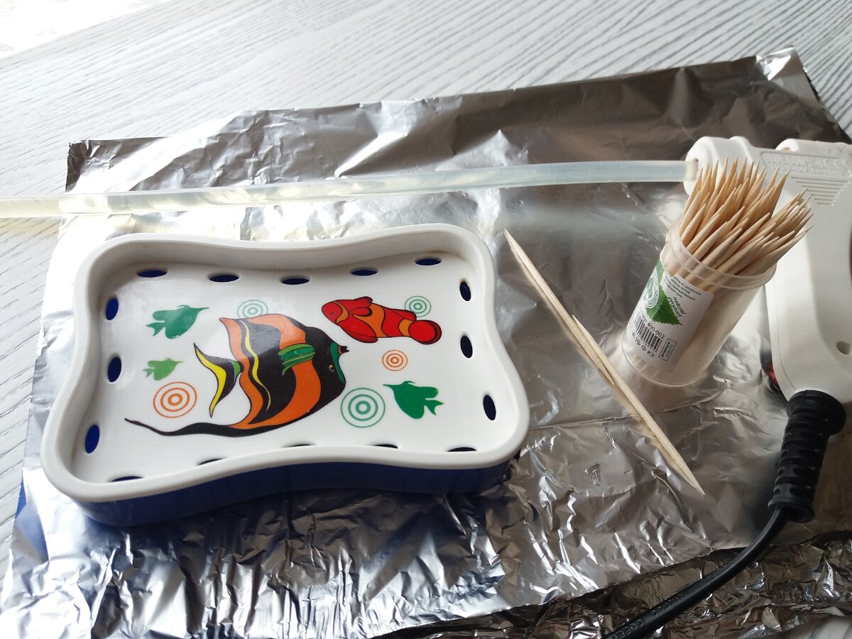 Ка же давно я не выкладывала что то интересно и необычное. Сейчас на самоизоляции возникает все больше идей делать вещи из подручных материалов. Сегодня я хочу с Вами поделиться замечательной идеей создания мыльницы для неё нам понадобятся только зубочистки и горячий клей. Немного истории: У меня была мыльница, но вот мыло в ней хранить было совершенно невозможно. Отверстий было слишком мало и в скором времени мыло превращалось в ней в бесформенную размокшую массу. Что мы только не делали чтоб спасти мыло, использовали губку, но мыло на ней все равно не успевало просохнуть. Да и мыть губку нужно каждый день. Мне хотелось создать что то простое, но эффективное. Нужна была какая-то подставка, чтоб на ней мыло могло хорошенько подсохнуть и сохраняло свою форму. Что нам нужно для создания нашей мыльницы: фольга , основа мыльницы, так же мне понадобился горячий клей и зубочистки. Для создания моей мыльницы я склеиваю две зубочистки и располагаю их вот таким образом Наносим го