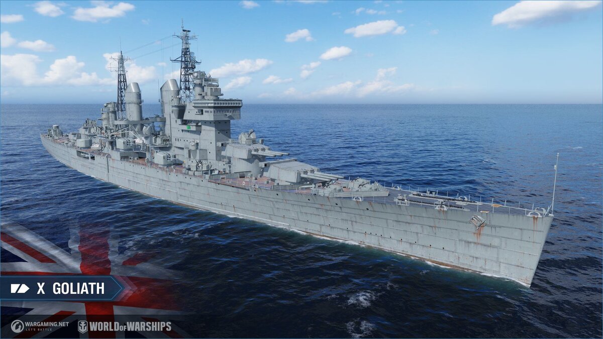 Goliath - британский тяжелый крейсер X уровня. Разработанный в противовес возможным суперкрейсерам или "большим крейсерам" стран Оси. Главной отличительной чертой являлось наличие орудий 234мм. Данный проект построен не был. Характеристики в игре: Живучесть: Очков боеспособности - 58600 Главный калибр: Вспомогательный калибр: Торпедное вооружение: ПВО: Маневренность и маскировка: Модернизации: Перки капитана: Достоинства корабля - неплохая броня и живучесть, наличие уникальной "Ремонтной команды", неплохое ПВО, фугасные снаряды . Недостатки корабля - посредственная маневренность, плохая баллистика, долгая перезарядка ГК. Узнать подробную информацию вы можете здесь. Ставьте лайки и подписывайтесь на канал.