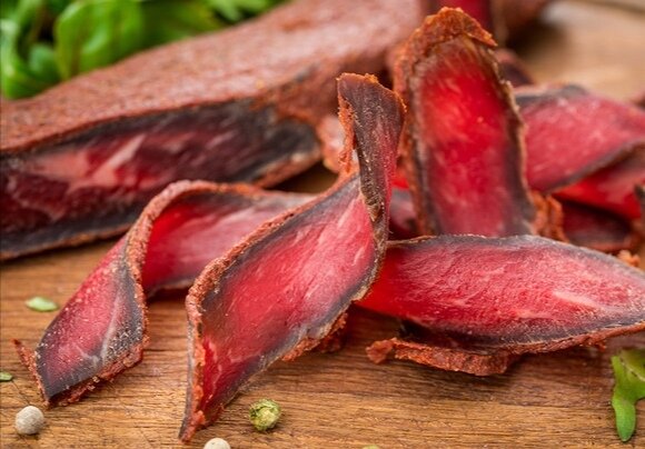 Добрый день, сегодня расскажу вам как я делаю бастурму скажу сразу что приготовление займёт минут 30 а до полной готовности нам придётся подождать около двух недель... И так нам понадобится Говядина мякоть длинный кусок 1кг Соль 700гр Чаман 250гр Перец 50гр Сумах 100гр Вода 150 мл Берём нашу говядину разрезаем её в доль волокон кладём в посуду и засыпаем её солью так что-бы мясо не было видно, убираем в холодильник на 3 дня каждый день сливаем сок,который выделяет мясо из за соли. После промываем под проточной холодной водой смываем остатки соли, затем удаляем всю влагу сухим полотенцем, заварачиваем в пегамент или вафельное полотенце и убираем в холодильник на три дня, не забывая менять полотенце по мере его вложности. Мясо может выделять белый цвет, не переживайте это выделяется соль. Ну вот прошло у нас два дня достаём нашу заготовку из холодильника, протыкаем и нанизываем его на верёвки на них мы будем его бодвешивать... Приготовление (замазки) Наливаем холодную воду, засы