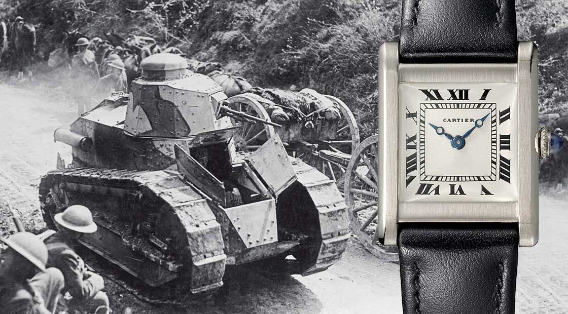 Военным срочно потребовалось новое прорывное оружие. И оно появилось почти одновременно у англичан и французов. Назвали его «танком», потому что при доставке к месту битвы при Сомме, где эти машины 15 сентября 1916 года впервые выползли на поле боя, их замаскировали под танки с керосином. Танк часовой тоже стал своеобразным орудием прорыва. Луи Картье, впечатленный рождением бронированного чудища, в начале 1917-го создал прототип этих часов, вдохновившись танком отечественного производства Renault.