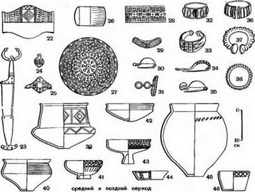 Среди находок наиболее часты бронзовые фибулы и бритвы.( Кстати, бритвы характерны для культуры Синташты и находок в Дании эпохи Бронзового века)