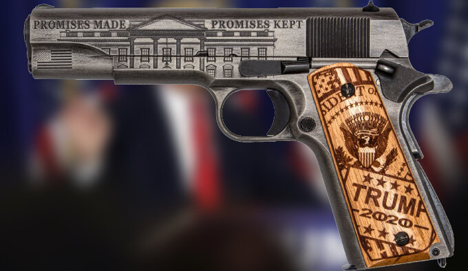 Группа компаний Kahr Firearms продолжает расширять серию оружия, посвящённую действующему президенту США - Дональду Трампу, и вслед за моделью Presidential Desert Eagle от MRI, Thompson Auto-Ordnance представили самозарядный пистолет Promises Kept 1911, который, как следует из наименования, является "художественной" версией, основанной на системе М1911 и посвящённой предвыборным обещаниям.
