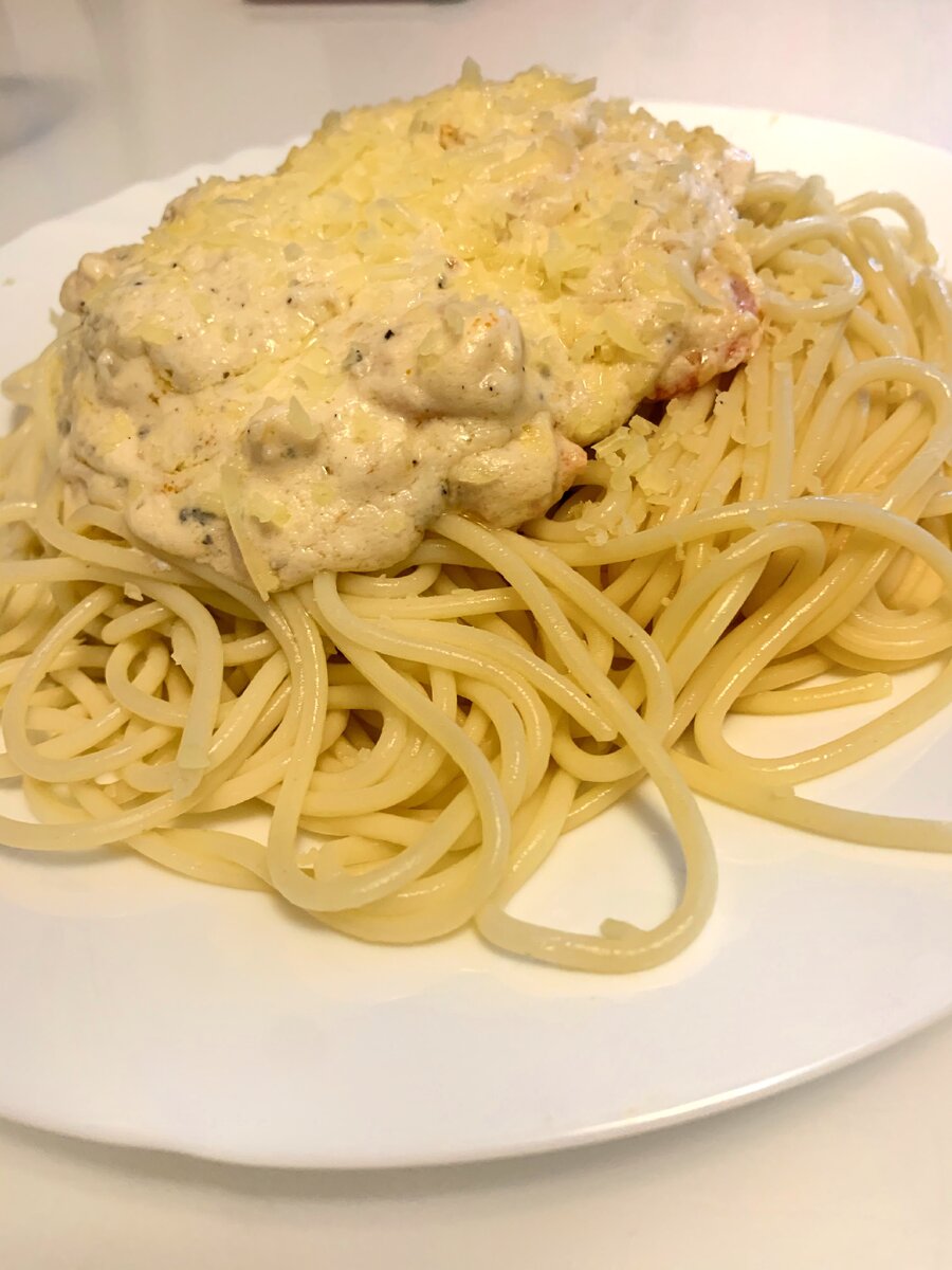 Ингредиенты: Креветки 200 гр спагетти сливки 500 гр от 20% пармезан 70 гр сливочное масло 2 зубца чеснока соль, перец Начнем! Отвариваем спагетти ( этот этап я не зафиксировала, думаю и так все это знают) Креветки очищаем Растапливаем масло, туда добавляем чеснок Следом кидаем креветки и обжариваем 2-3 минуты на среднем огне Добавляем сливки, соль, перец и доводим до кипения на среднем огне Как закипело уменьшаем огонь и добавляем пармезан Перемешиваем и всё - соус готов Подавать лучше горячим и сверху посыпать пармезаном Приятного аппетита😋