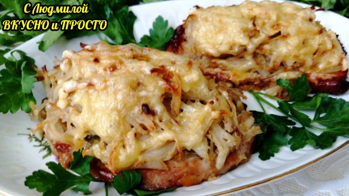 Отбивные из свинины в духовке, можно сказать, сразу с гарниром, который будет в виде "шубки" гармонично дополнять отбивную котлету - это отличный вариант горячего блюда на праздничный стол. А сами отбивные мы буквально на полчаса замаринуем в интересном маринаде и получится у нас очень вкусное, праздничное блюдо. Причём готовить его можно как отдельными отбивными котлетами, так и одним целым, можно сказать, пирогом, а затем разрезать его на порционные куски. Вместо маринованного огурца можно брать маринованные кабачок или баклажан, в общем, что-то с кислинкой. Из этого количество продуктов получается 14 - 15 хороших отбивных котлет.