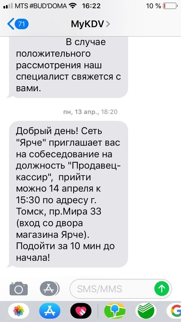 По приезде из Москвы, я начал думать, как же залутать немного денег. Мне нужно было оплатить компьютер и на жизнь немного. Кто знает, а кто нет, я зарабатывал последние годы съёмкой видео. И после того как вернулся домой, то принял решение, что больше никогда не возьму камеру в руки. Начал я собственно искать какие то варианты работы потому что насколько помните, то первый мой пост в группе после приезда был о том, что надоел фриланс и хочется попробовать нормальную работу. Несколько дней подряд я провёл на просторах вакансии Авито и ХХ.ру. Но никто не приглашал на собеседование. Около меня есть магазин «Ярче». На тот момент, я совсем отчаялся и подумал, а дай попробую. Подошёл на кассе к продавщице и спросил, а куда подать заявку, она ответила, что на сайте есть вся инфа. Далее уже на сайте, мною была оформлена заявка на должность кассира и оставалось ждать смс приглашения на собеседование. Ощущение внутри было дерьмовое, но даже из этого планировал сделать какое то шоу. Хотел писать или вести подкаст о том, какт там работаю и т.д. Понимаете как работает мой мозг? Думаю ещё не совсем. Проходит 1 день и на телефон пришло СМС…
