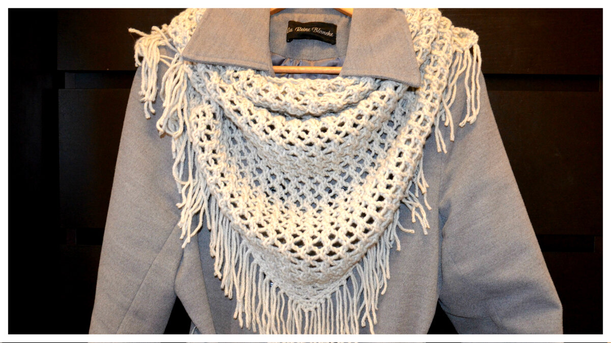 Или можно посмотреть здесь подробнее Шаль сетка спицами с бахромой