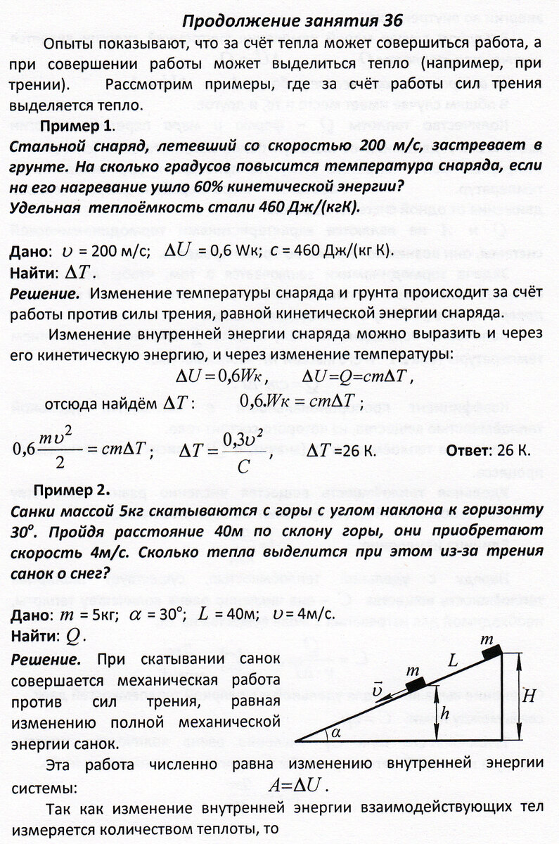 Количество теплоты. Внутренняя энергия идеального газа (продолжение занятия 36)