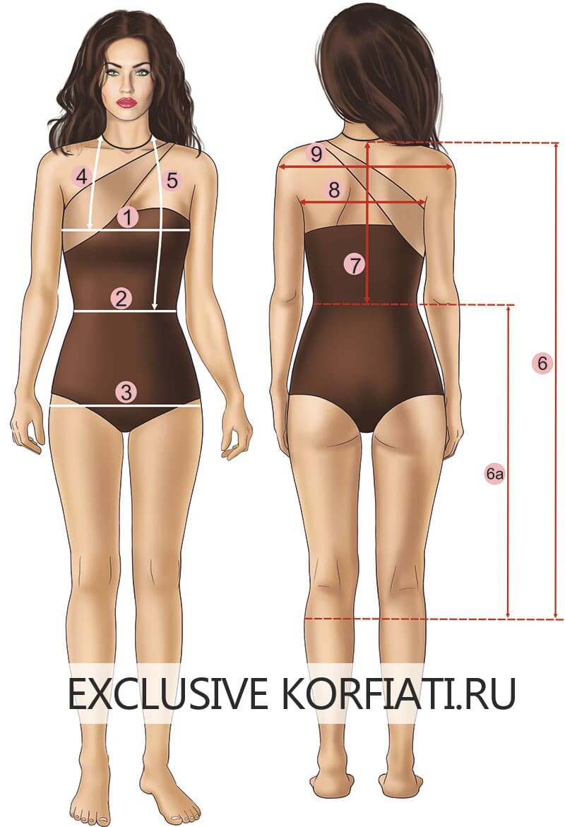 Важно: перед тем как приступить к снятию мерок, наденьте белье, которое вы предполагаете носить под это изделие, поскольку современные колготки могут давать эффект «утяжки» и убирать от 1 до 3 см в объеме, а бюстгальтеры, напротив – прибавлять объем. 1. Обхват груди.