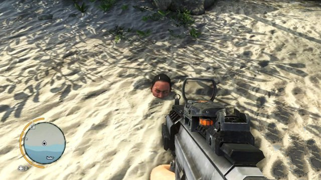 Привет друзья! Сейчас я собираюсь вам рассказать про пасхалки — т.е. секреты этой игры, которые если тупо проходить по сюжетной линии — вы не увидите! Также я расскажу вам некоторые хитрости игры Far Cry 3. Итак, пожалуй начнем. __________________________________________________________________________________________ 1) Как получить достижение *Say Hi to the Internet* Если кто то из вас смотрел мини-сериальчик Far Cry 3: Experience который состоит из 5 серий и вышел за месяц официального релиза игры, тот поймет суть данной пасхалки. Но, в двух словах объясню тем, кто не смотрел сериал, в чем прикол этой пасхалки. В фильме был один такой чувак по имени Christopher Mintz-Plasee. А в этой пасхалке мы найдем его… закопанного в песок по голову. Если мы подойдем к его голове, и взаимодействуем, то таким образом вы получите скрытое достижение. Так же помимо этого, справа от него, почти уже где море будет воткнут нож в песок(прям как на фотографиях обложек Far Cry 3), и справа, чуть дальше
