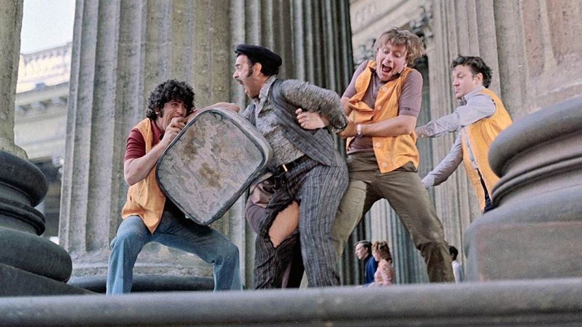 Невероятные приключения итальянцев в России (1974). Фильм режиссёра Эльдара Рязанова. Одна из лучших советских комедий, отдельные фрагменты появляются как цитаты в различных передачах. Незабываемы эпизоды погони льва за туристами из Италии и то, как они прячутся внутри сувенирных матрешек-"По матрёшкам-команда героя Миронова, сотрудника милиции". В главной роли опера милиции Андрей Миронов,Ольга Аросева играет его интеллигентную и очень обеспокоенную жизнью своего сына маму. Много можно сказать о гениальности советского кинематографа, об интересных сюжетах и о блестящем чувстве юмора. Только вот... Что же скажут иностранцы после просмотра такого фильма: darima Это не мой любимый фильм Рязанова, но тем не менее я рекомендую его всем, кто любит комедии об охоте за сокровищами. Сюжет вполне обычный, довольно забавный, но далеко не лучший пример русских комедий. Хорошая новость заключается в том, что в отличие от многих русских комедий, которые забавны только для носителей языка, эта