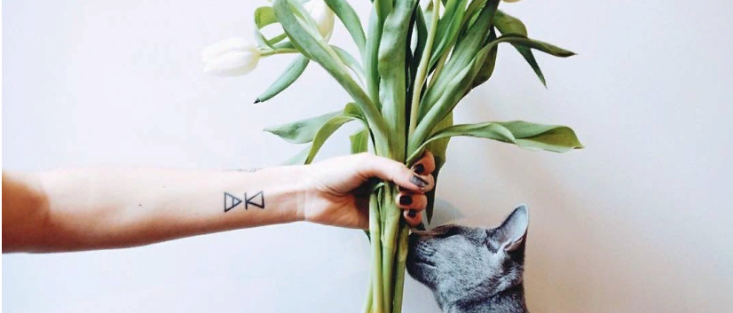 - тату на запястье для девушек в виде птицы, животного или насекомого: девушки чаще выбирают рисунки кошек, дельфинов, скачущих лошадей с развивающимися гривами, оленей; так, выбор представителя кошачьих (не только домашней кошки, но и тигрицы или пантеры) символизирует гордость, своенравие и одновременно нежность и ласку; дельфин – символ веры и добра – может принести своему обладателю удачу и освобождение от каких-то оков; бабочек предпочитают нежные и ранимые натуры; изображения птиц – ласточек, голубей, колибри – символизируют стремление к свободе; цветов – извечных символов женственности; чаще всего в наколках используют розы, ассоциирующиеся с любовью и чистотой; значение имеет и цвет: красный трактуется как страсть, белый – невинность, желтый – разлуку с любимым, голубой – печаль; лотос – цветок чистоты и гармонии; если же на рисунке изображено несколько цветков, располагающихся на одном стебле, считается, что такое тату символизирует бессмертие;