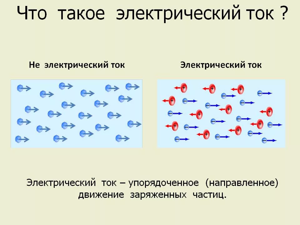1. Электрический ток — это упорядоченное (направленное) движение заряженных частиц под действием электрического поля. Частицами могут быть: электроны, протоны, ионы, дырки. 2. Для существования электрического тока необходимо два условия: 1) Наличие заряженных частиц 2) Создать электрическое поле в проводнике, которое постоянно поддерживать упорядоченное движение заряженных частиц 3. Электрическое поле обладает силой: F = q*E Скорость поля составляет 300000 км/с., однако скорость движения электронов не превышает нескольких мм. в секунду I = q/t Для того чтобы ток протекал постоянно необходима сила, которая действует постоянно, это обеспечивается источниками тока, которые совершают работу по перемещению электронов. Виды 1) Гальванический элемент (аккумуляторы) 2) Термоэлементы 3) Фотоэлементы 4) Генераторы Как же можно узнать о существовании тока? Всё просто происходят некоторые действия - тепловые, химические, магнитные.