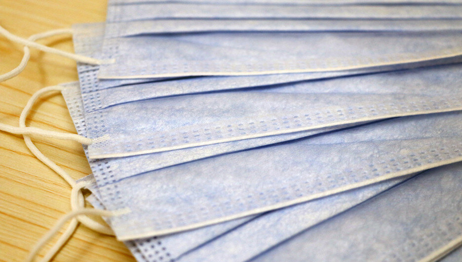 3. Вырежьте выкройку маски с этикетки и приложите к согнутым салфеткам.