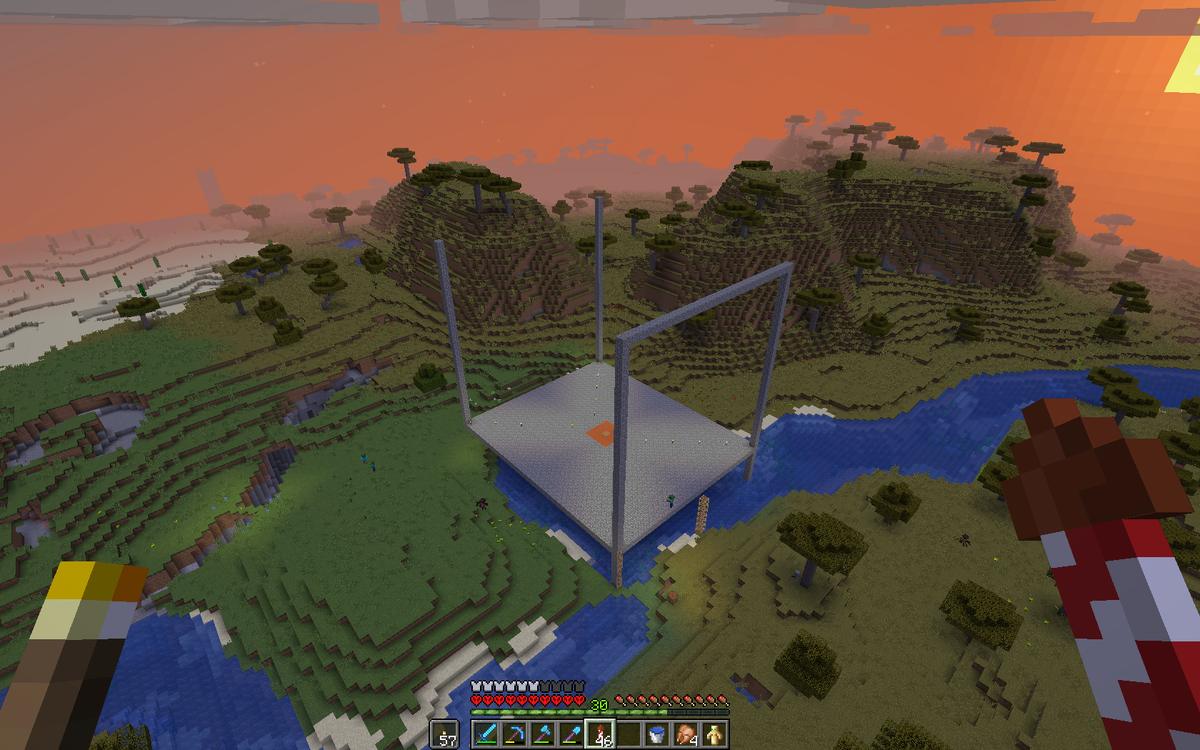 Чтобы на ферму сделать слой воды пришлось накопать примерно 1000 кубометров земли! Хорошо хоть с алмазной лопатой, зачарованной на эффективность 5, это не проблема. :)