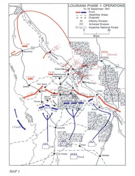 Сентябрь 1941 года. В рамках больших военных маневров, в Луизиане схлестнулись армия “синих” и “красных”. В ходе первой фазы учений 2-я Танковая дивизия армии “Красных” под командованием генерала Паттона, разделившись на две группы должна была пересечь небольшую реку Кейн, а затем совершив быстрый марш выйти во фланг армии “синих”.