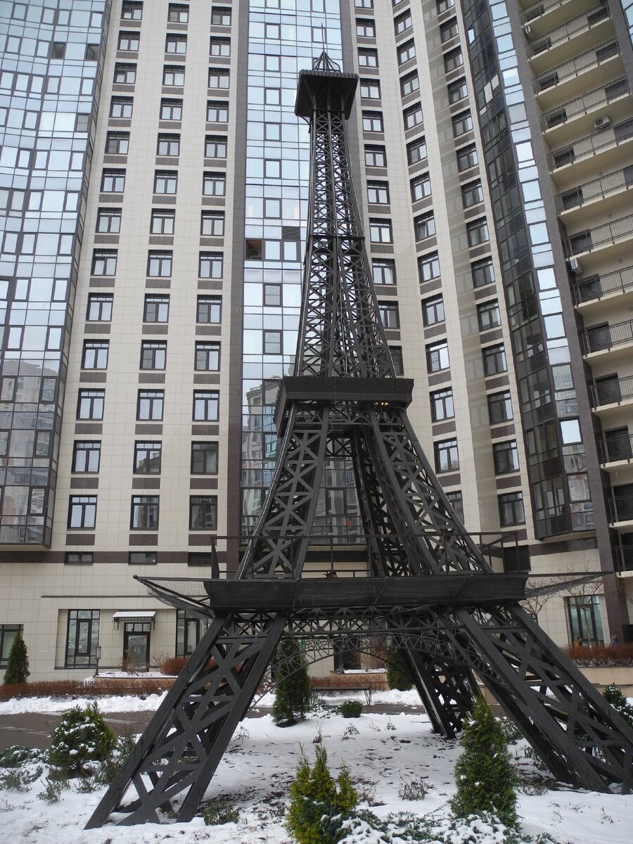 Про ЖК с Эйфелевой башней во дворе мне впервые рассказали в контексте ответа на вопрос «почему почти все петербургские новостройки такие уродливые?» Для спикера «Гранд Фамилия» на проспекте Космонавтов была эталонной иллюстрацией. Позже мы смотались в Московский район, чтобы увидеть и пощупать выдающийся жкх-арт от застройщика. Шёл снег. Двор с артом обнесли оградой. Нас впустила какая-то милая женщина — «хотите посмотреть поближе?» Помимо башни во дворе были прочие узнаваемые символы Парижа: вывески ар-нуво с красными бутонами светильников; Триумфальная арка; пирамида Лувра. Когда мы вошли в неё, нас заметил молодой охранник, кинулся, враждебно бубня: «Здесь нельзя снимать! Это частная территория!» На вопрос, зачем же тогда нагромоздили весь этот пластмассовый мир, если не для селфи, не ответил. Париж на Космонавтов возвела компания «Хоум Траст». Их новейший проект — ЖК Barcelona всё в том же Московском районе. Сдали месяц назад; слезу с изоляции — сразу заеду. Проект выглядел так (Г