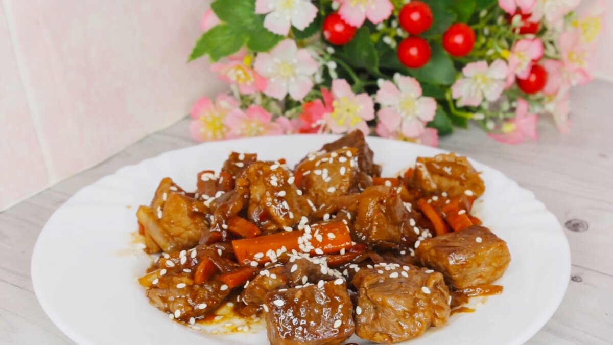 ⠀⠀Ингредиенты: ⠀⠀ ⠀➡️Свинина– 800 г., ⠀➡️Морковь - 200 гр ⠀➡️Лук - 300 гр. ⠀➡️Перец болгарский - 100 гр (у меня замороженный) ⠀➡️ Растительное масло - для жарки ⠀➡️ Соус "Черный чили" - 100 гр. ⠀➡️ Соевый соус - 100мл ⠀ ⠀⠀⠀⠀Приготовление: ⠀ ⠀Свинину нарезаем небольшими кусочками и обжариваем на сковороде в небольшом количестве растительного масла. ⠀Нарезаем морковь соломкой, лук - полукольцами и добавляем к мясу, перец у меня уже был нарезан кубиками, обжариваем минут 5. ⠀Добавляем соусы и тушим под крышкой до готовности мяса. ⠀Приятного аппетита!🤗