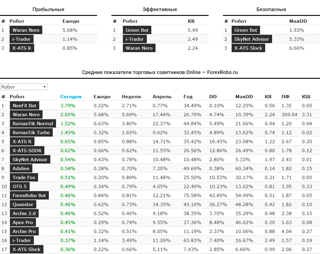 На фоне большинства роботов из нашего рейтинга некоторые представители стабильно показывают результат выше среднего! Сегодняшний день не стал исключением, а первое место по праву досталось NeoFX Bot с результатом 3.79% 🏆 БОЛЬШЕ ВСЕХ - прибыль за день Показать Рейтинг Полностью Как Формируется рейтинг Подписывайся на канал и Ставь Лайк =)) И следи за развитием проекта конечно. Я уверен, что впереди будет еще много интересного, ведь ниша Торговых Роботов по настоящему начинает набирать обороты только сейчас! Ссылка на мониторинг: https://forexrobo.ru