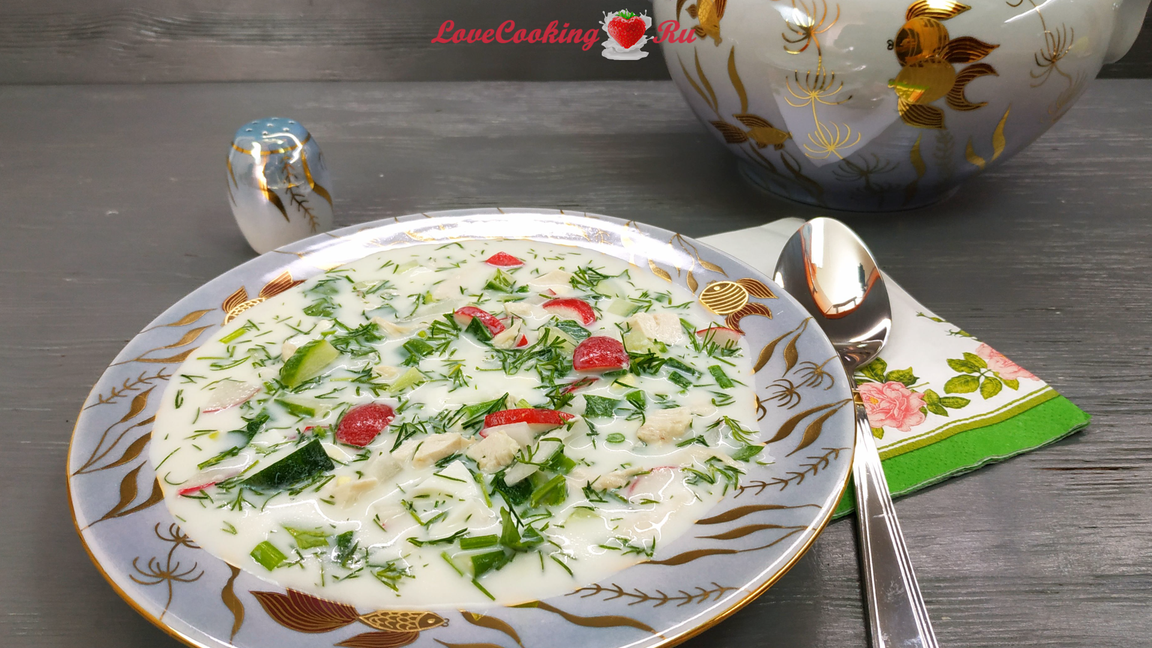 Рецептов окрошки множество, у каждого есть свой любимый. Мы больше всего любим легкий вариант окрошки на молочной сыворотке или на кефире с минералкой. Такой рецепт отлично подойдет и тем, кто следит за своей фигурой. Сохраняем рецепт на 8-10 порций: 10 отварных яиц 500 г отварного куриного филе 2 больших огурца 500 г редиса 1 л кефира 1,2 л газированной воды зелень соль (у меня 1 ст.л.) лимонный сок/лимонная кислота по вкусу 1 ст.л. готовой средне-острой горчицы Отварные яйца и куриное филе нарезаем средними кубиками. Редис и огурцы нарезаем соломкой или кубиками. Измельчаем зелень. Объединяем все ингредиенты. Заливаем кефиром и газированной водой. Солим, перчим по вкусу. Добавляем горчицу и лимонный сок по желанию. Всё перемешиваем. Убираем окрошку настаиваться в прохладное место на 2-3 часа. Видео-рецепт: